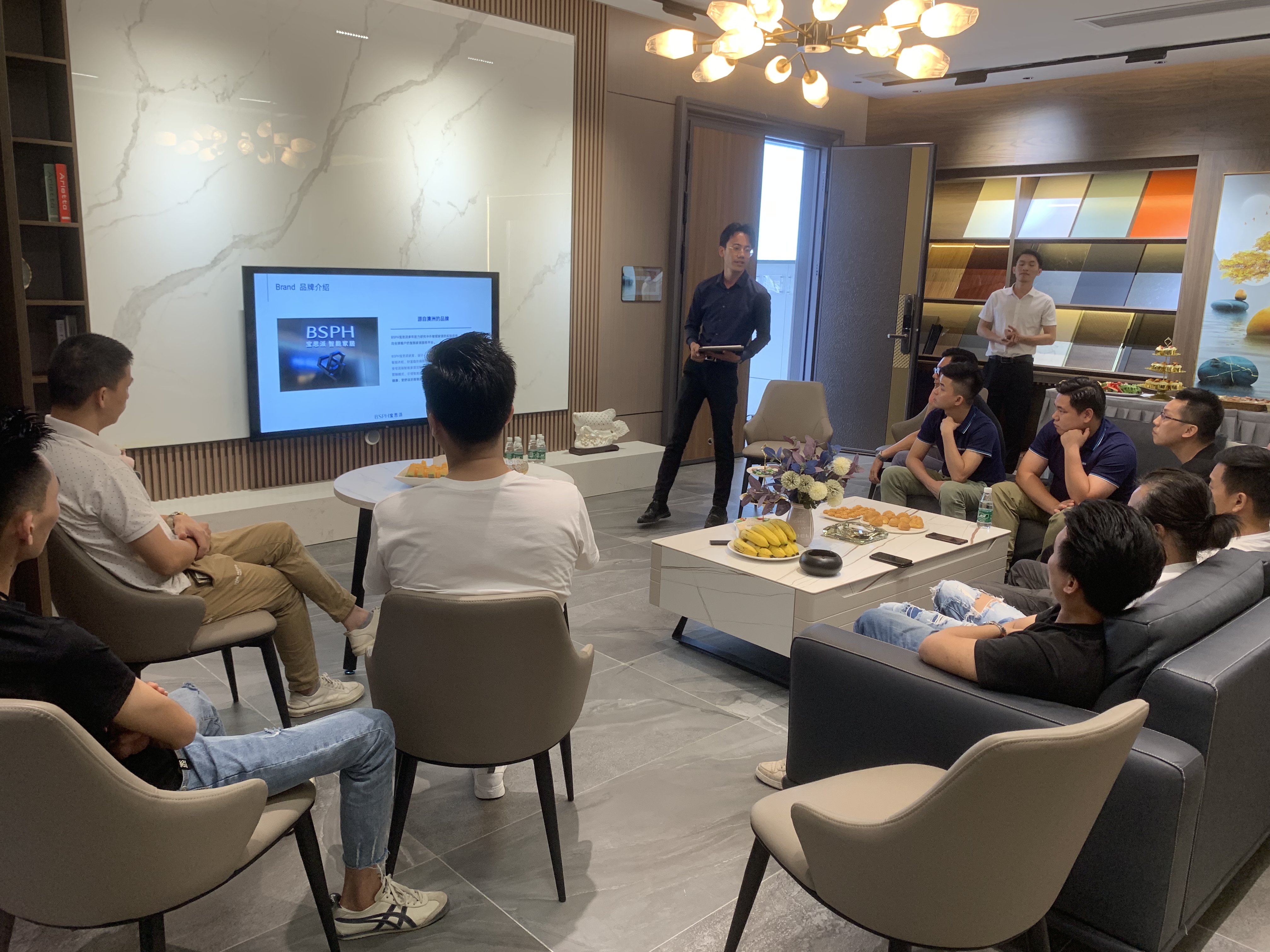 品鑒環節結束后,肇慶寶思派運營經理林健成先生為設計師講解了肇慶寶思派的門店服務理念,并詳解售前、售中、售后的服務項目,加深設計師對寶思派營銷服務的了解。